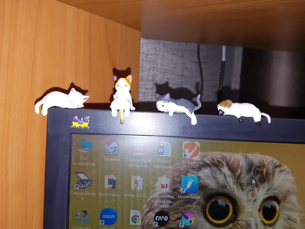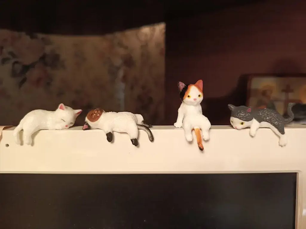 Mini Myskatter tillför värme och personlighet till din arbetsplats. De små figurerna gör skrivbordet mer inbjudande och skapar en lugnare atmosfär – även under stressiga arbetsdagar.