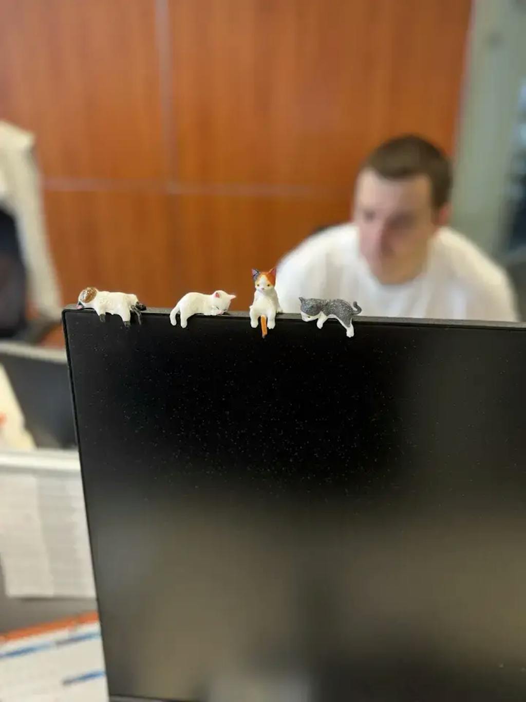 När arbetet blir intensivt kan även små saker göra skillnad. En snabb blick på de små katterna kan ge ett ögonblick av lugn och ett leende – som en liten paus mitt i en hektisk dag.